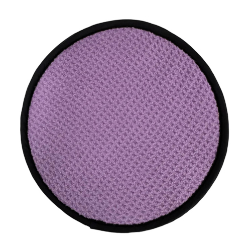 - Pad comes in Blue, Black, Purple and Green. This pad is a 7.5 inch circle with 5 (that’s right FIVE) layers for the best clean out there.The textured microfiber layer is made to be used dry during competition or wet with our cleaners when not competing.The black leather layer is also great for using dry during competition. Inside, there are TWO layers of sherpa PLUS a waterproof rubber layer.It feels great in your hand AND easily wipes away dirt and oil while bowling.